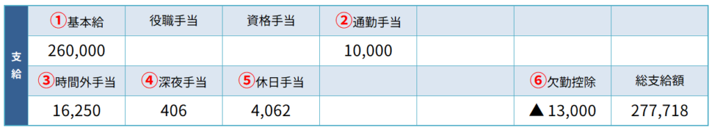 会社から支給される給与の金額と諸手当の金額がわかる区分です。読み解くことでお給料を増やすヒントが見えてくるかもしれません。